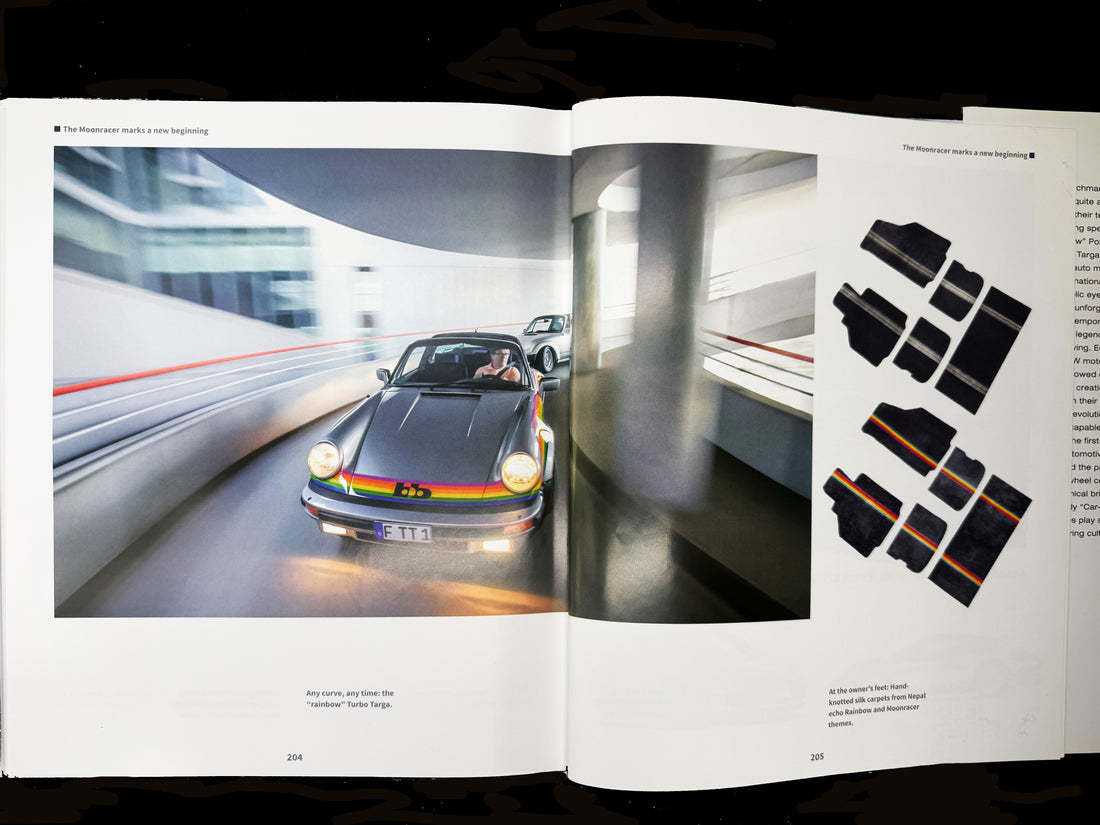 The Rainbow Porsche is one of the most famous cars from the Rainer Buchmann / bb collection. The silk and wool floor mats were designed and manufactured for this extraordinary project.