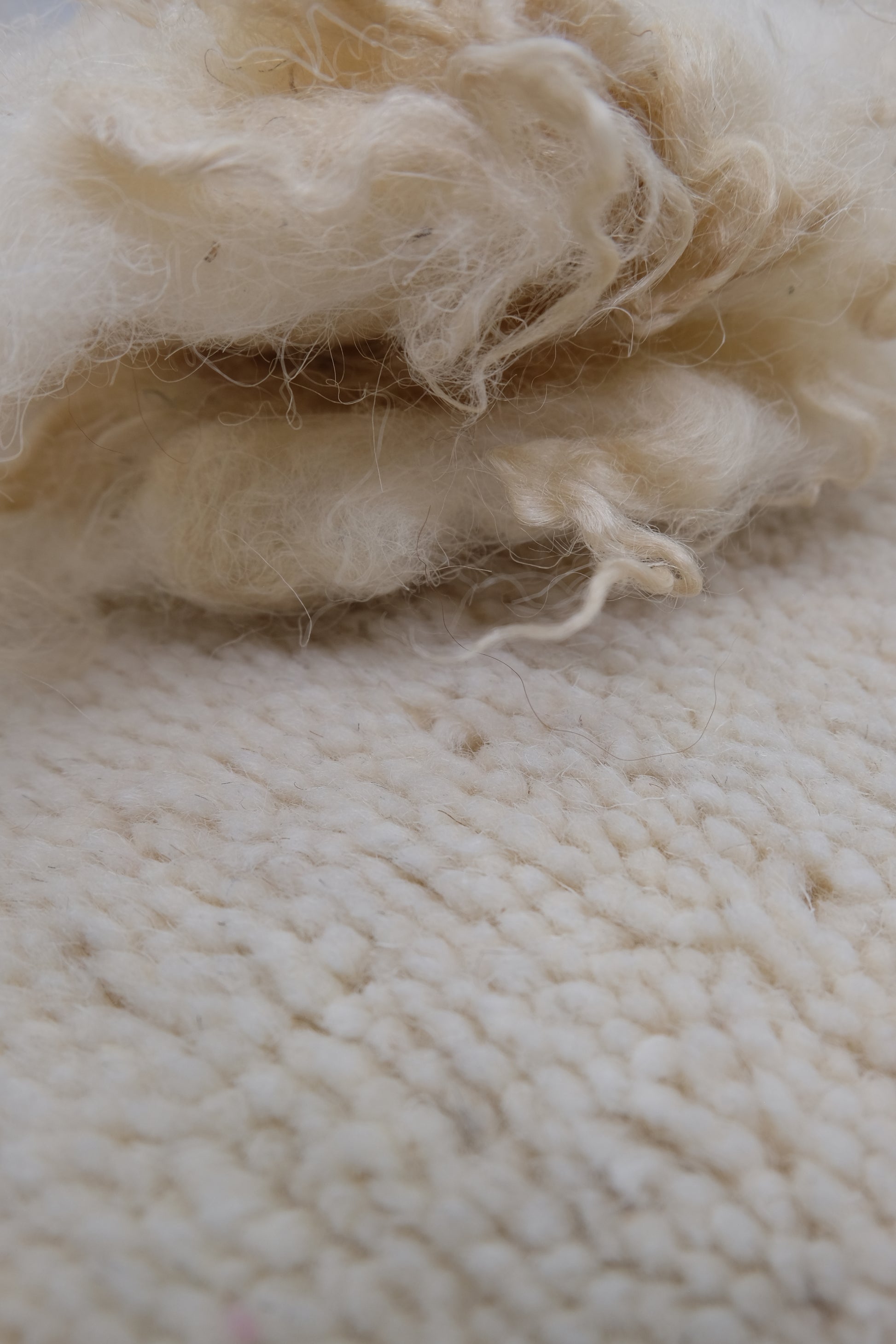 Das Wollgarn stammt aus dem Hochland. Schafschurwolle wird traditionell in der tibetischen Teppichknüpferei verwendet. Sie ist belastbar, langlebig und bringt ein schönes natürliches Farbspiel mit.